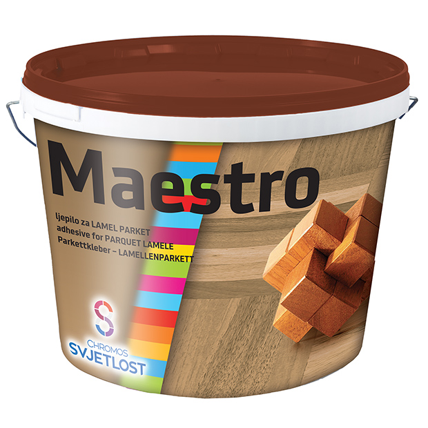 MAESTRO ljepilo za lamel parket je na bazi vodene disperzije polivinilacetata za lijepljenje klasičnog i lamel parketa na betonske, drvene i slične podloge.