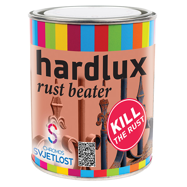 HARDLUX RUST BEATER je zračno sušivi antikorozivni premaz odličnih mehaničkih svojstava; temeljni i međuslojni premaz koji se može nanositi direktno na hrđu koji veže koroziju, neutralizira ju i zaustavlja daljnje širenje.