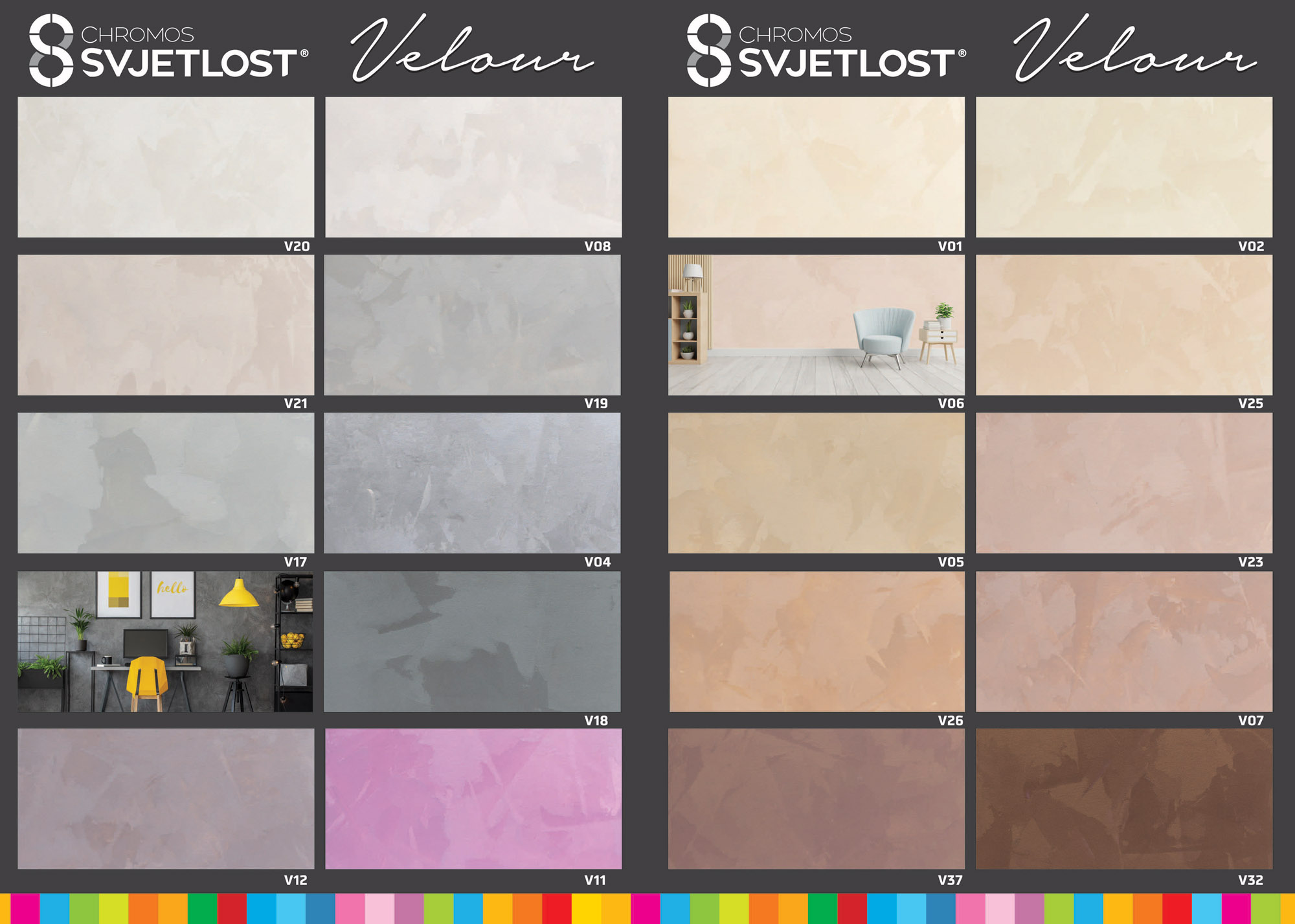 It is produced in silver and gold base. BRAVO INSPIRE VELOUR shades can be made by Top Mix tinting system CHROMOS-SVJETLOST.