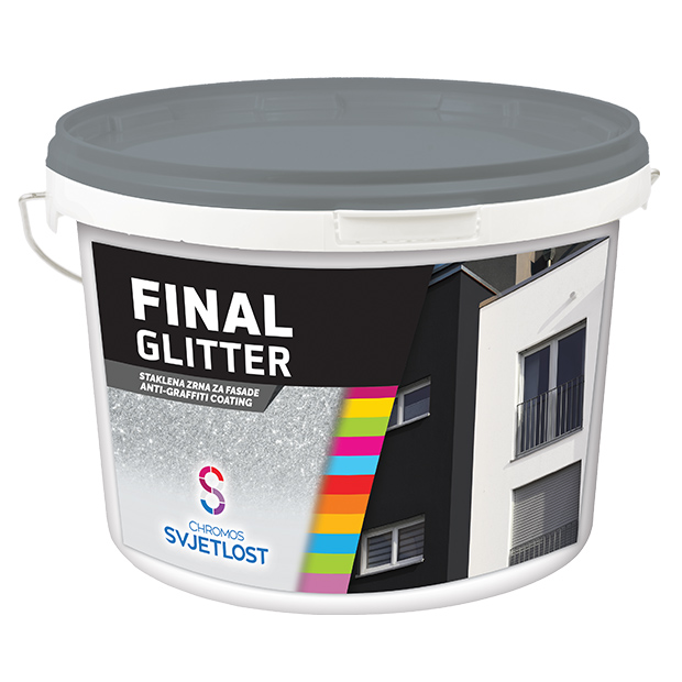 Koristi se isključivo za vanjske površine. Primjenjuje se na tamnim i svijetlim nijansama žbuke te na svim vrstama žbuke osim silikatne žbuke. Može se ugraditi i na svježe nanesenom sloju fasadne boje (poput FASENA elastic, FASENA fiber). Ne preporučuje se ugrađivati na glatke ili suhe površine. FINAL GLITTER se ne preporučuje koristiti gdje je mogući izravan kontakt s osobama ili u uskim prolazima. Nanosi se uređajem za prskanje (npr. Airless, prema uputama proizvođača stroja). FINAL GLITTER upuhuje se kružnim ravnomjernim pokretima u svježe nanesenu žbuku ili fasadnu boju ovisno o željenom izgledu. Prilikom nanošenja materijala obavezno je koristiti zaštitnu opremu (zaštitne naočale, zaštita dišnih puteva, zaštitne rukavice).