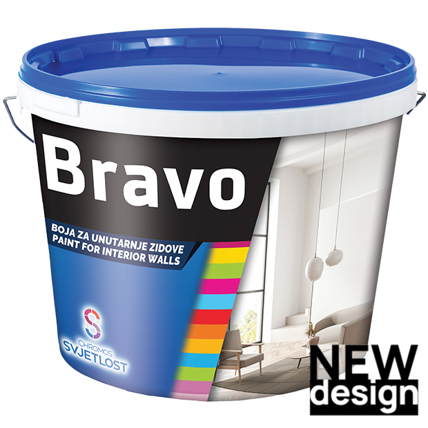 Bravo - дисперсионная краска для стен внутри помещений, стойкая к сухой уборке, высокой белизны и хорошей укрывистости