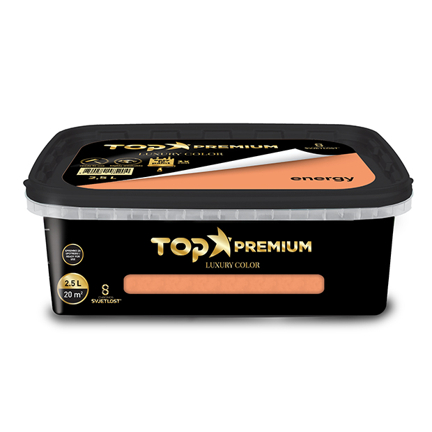 Группа продуктов Top Premium, представляет собой группу заранее колерованных, экологически чистых красок. Благодаря своей простоте в применении, эти краски освободят Вас от необходимости беспокоиться о длительной подготовке и помогут полностью посвятить себя оформлению своего дома. Краска Top Premium является экологически чистой дисперсионной краской для стен внутри помещений, высокой укрывистости, при этом создает прочное и эластичное покрытие, которое можно мыть.